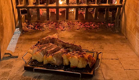 Menù toscano con carne alla brace, pasta fatta in casa e pizze cotte nel forno a legna.